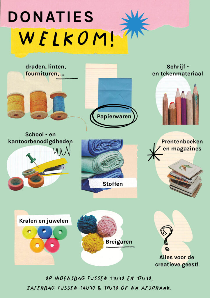 Welkom om je (on)gebruikt creatief materiaal te komen doneren!